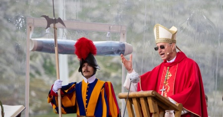 AIROLO - Nonostante il tempo incerto, diverse centinaia di persone si sono recate al passo del San Gottardo per la celebrazione della messa da parte del vescovo Alain de Raemy.
