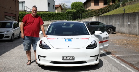 Manuel Friedrich di Autoscuola 2000, dà lezioni di scuola guida con una Tesla Model 3. Elettrica, automatica, con un tablet come cruscotto e zeppa di comfort, è un po' il simbolo del nuovo concetto di auto: «Ai ragazzi piace, certo, ma per loro non è niente di particolare o “esagerato”». Oltre alla Tesla, Friedrich ha anche una Seat con cambio manuale: «Devo dire che, purtroppo, il 90% sceglie di fare lezione con l'automatico».