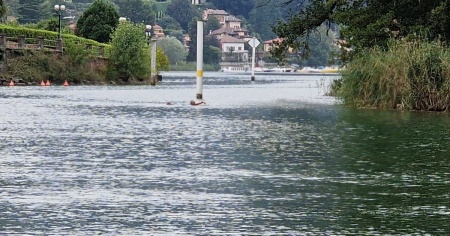 A nuoto nello Stretto di Ponte Tresa, la scena immortalata da una barca: «È da incoscienti».