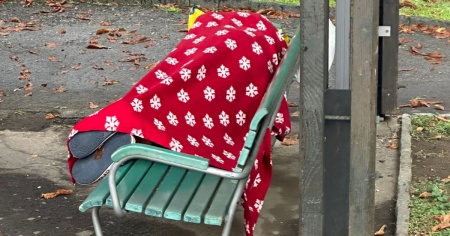 LUGANO - Si presentava così, con una copertina di pile rossa punteggiata da fiocchi di neve bianca, sdraiato su una panchina a Massagno, all'altezza della fermata Al Sole. L'uomo, presumibilmente un senzatetto, è stato fotografato sabato poco prima di mezzogiorno da un passante, che ci ha subito segnalato l'avvistamento chiedendo di intervenire. «Non so se stava bene, non ho avuto il coraggio di avvicinarlo», ha scritto il lettore a corredo della foto. Probabilmente la stessa arrivata ai City Angels di Lugano. «Dopo la segnalazione abbiamo mandato un'auto», ci spiega infatti Antonio Chiarella, meglio conosciuto come Scorpio, da nove anni tra gli "angeli cittadini" e ora nuovo coordinatore. «Purtroppo non abbiamo trovato nessuno», prosegue.