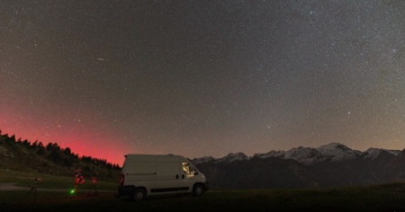 Maurizio Vannetti, mediatore scientifico all'Ideatorio dell'Università della Svizzera italiana, ha potuto catturare il fenomeno naturale in tutta la sua bellezza nei pressi della Capanna Gorda, in val di Blenio. Il video, in cui si possono ammirare varie bande luminose di un rosso sgargiante, è stato girato tra la 1.15 e le 5.30 del mattino.