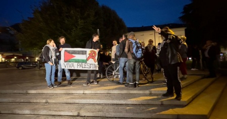 Alcune decine di persone hanno manifestato davanti a Palazzo delle Orsoline a favore del popolo palestinese