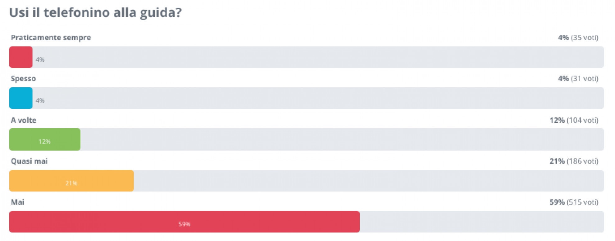 Il sondaggioAlla domanda "Usi il telefonino alla guida?" le risposte (al momento in cui viene scritto questo articolo) sono le seguenti: