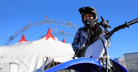 I bikers del gruppo "Globe of Speed" sono pronti a dare spettacolo al circo Knie. Dieci centauri: nove uomini e una donna: Tania.