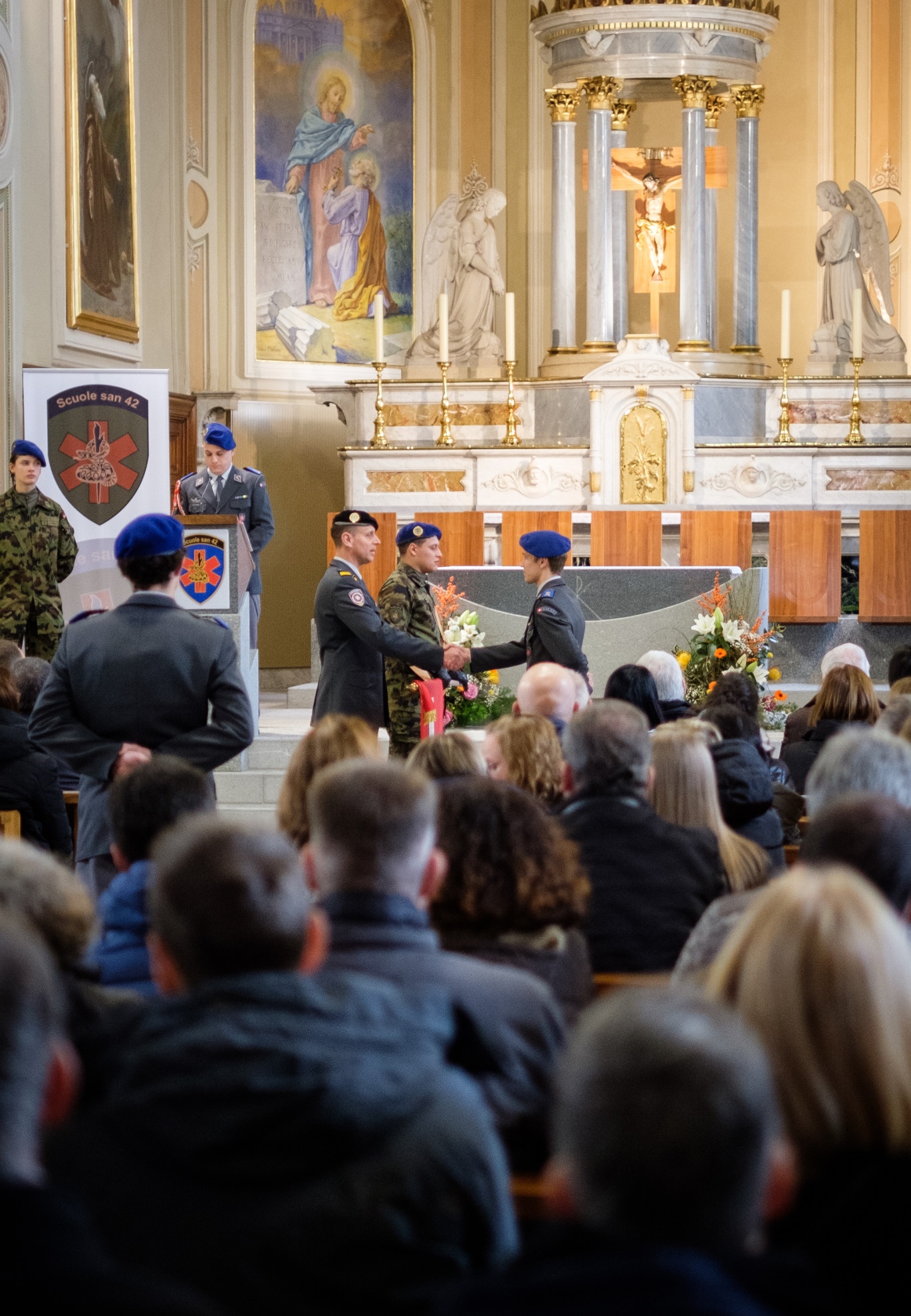 AIROLO - Erano ottanta gli aspiranti promossi a sottoufficiali delle truppe sanitarie al grado di sergente, dal colonnello di stato maggiore Marcello Lesnini, presenti lo scorso 2 dicembre nella Chiesa dei santi Nazario e Celso di Airolo. Tra loro vi erano anche 14 militi ticinesi.