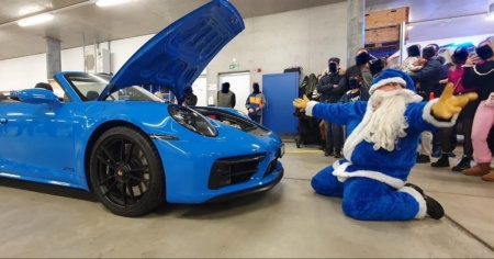 LOCARNO - Una tradizione che si ripresenta da 17 anni a questa parte: nei giorni scorsi il Blu Nicolao è arrivato ad allietare le famiglie degli impiegati del Salva di Locarno a bordo di una Porsche blu fiammante, messa a disposizione dal Centro Porsche Locarno.
