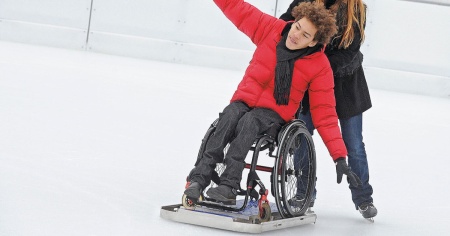 Il pattino speciale è frutto del progetto "Pattinare su ghiaccio per persone in sedia a rotelle" promosso dalla Fondazione Cerebral per permettere anche alle persone in sedia a rotelle di pattinare sul ghiaccio. Si tratta di una piattaforma che poggia su delle lame, a cui si può accedere con la sedia a rotelle grazie ad una piccola rampa agganciabile. Il pattino speciale è adatto a quasi tutte le normali sedie a rotelle. Attualmente una novantina di piste in tutta la Svizzera ne sono dotate, e ora anche quella di Piazza del Sole, che rimarrà aperta tutti i giorni durante le festività accompagnando popolazione e visitatori nel nuovo anno nell’ambito della manifestazione “Natale in Città”.