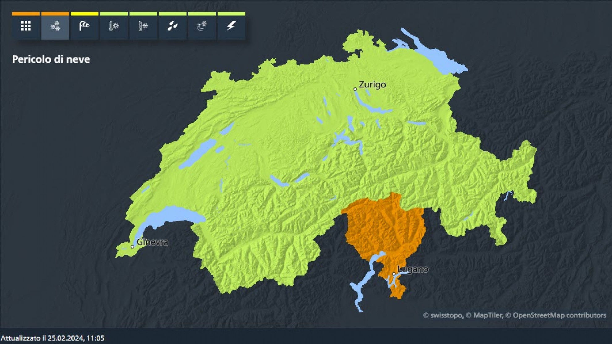 «Dopo una domenica con precipitazioni deboli e intermittenti - scrive MeteoSvizzera -queste ultime si faranno più frequenti a partire dalla notte. Il limite delle nevicate sarà compreso fra 400 e 600 metri, ma nelle vallate alpine del Sopraceneri potrà spingersi a tratti fino al fondovalle».