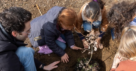 Le querce, coltivate e poi donate da IAMCLIMATE, sono state piantate con grande entusiasmo e sensibilità ecologica dagli studenti di prima elementare delle scuole di Comano.