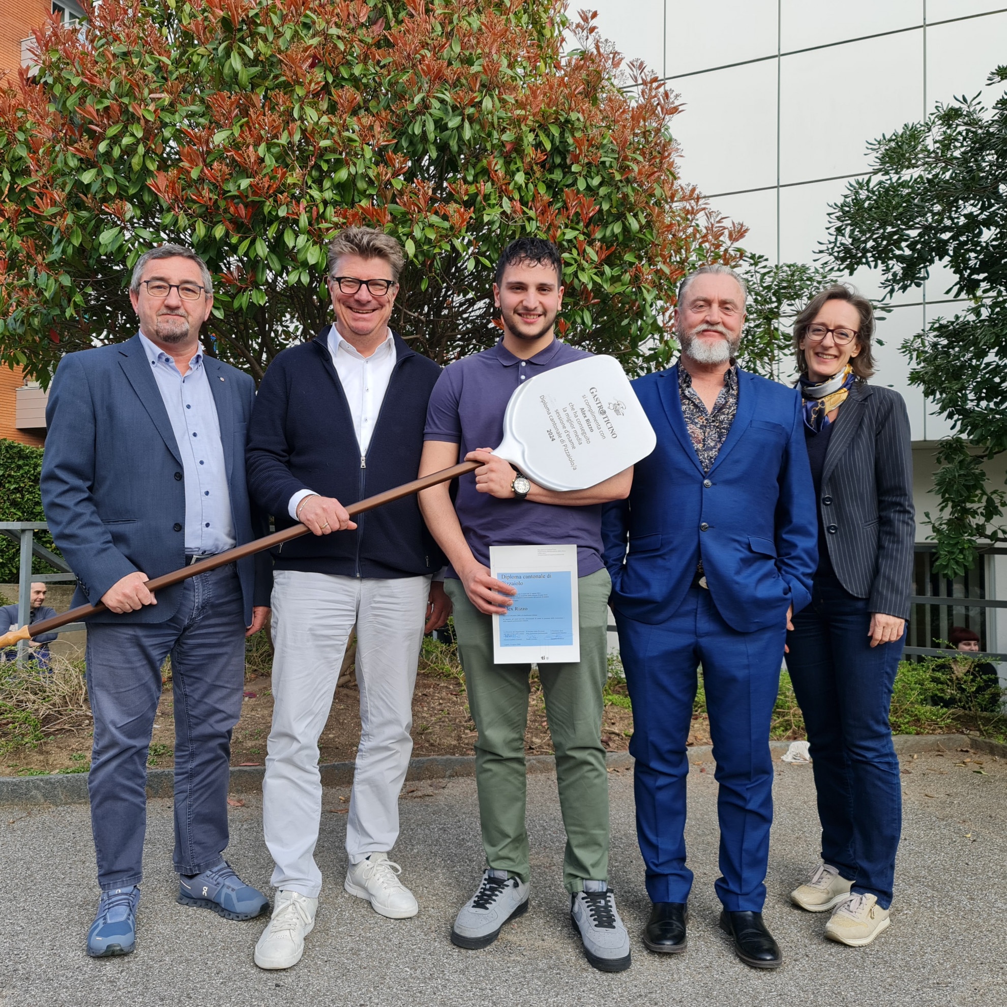 La consegna dei diplomi è avvenuta durante una cerimonia alla quale hanno partecipato Gabriele Beltrami (direttore GastroTicino), Giovanni Brumana (presidente Commissione Esame Pizzaioli - CEP), Andrea Piemontesi (servizi della Formazione continua DFP), Cosmino Basile (membri CEP), Giovanni Zinna (formatore materia pizza e membro CEP), Michele Zaffarano (in rappresentanza di Lactalis Suisse), Valentina de Sena (responsabile Ufficio per la formazione professionale di GastroTicino) e vari periti e docenti.