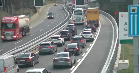 Il traffico è già fortemente rallentato in direzione sud anche nel territorio ticinese, con i primi forti rallentamenti tra Melide/Bissone e Mendrisio.