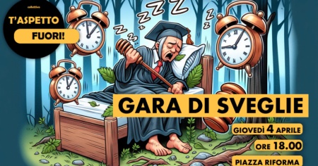 LUGANO - Dopo la bara, messa davanti alla Procura di Lugano con tanto di corteo funebre per sottolineare la morte della Giustizia ticinese, dopo la gara di fischi in occasione dell'allocuzione del primo agosto della Municipale Karin Valenzano Rossi rea di non aver saputo gestire lo sgombro dei molinari, il Collettivo “T’aspetto fuori” torna alla carica con la Gara di sveglie. L’appuntamento è per giovedì 4 aprile alle 18.00 in piazza Riforma a Lugano.