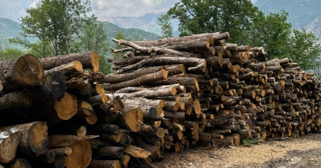 L'impianto di teleriscaldamento: 5'000 m3 di legname all'anno per risparmiare 1 milione di litri di combustibile fossile - Intanto, «il legname esboscato» è stato «stoccato sul posto in attesa di poter essere trasportato presso la centrale termica di Losone».