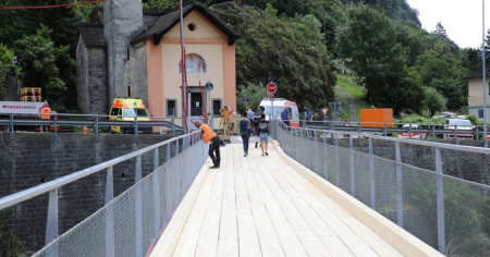 CEVIO - Attualmente la passerella ciclopedonale in zona Visletto è l'unico manufatto che funge da collante a una valle che lo scorso 29 giugno è stata tagliata in due dal nubifragio.