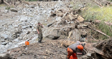 A dieci giorni dalla catastrofe, il Piano di Peccia (Lavizzara) si tinge di grigioverde. Nella giornata di oggi, mercoledì 10 luglio, nella località dell'Alta Vallemaggia hanno infatti fatto capolino i militari. D'altra parte l'esercito era stato chiaro sostenendo che avrebbe messo a disposizione delle zone disastrate gli uomini necessari.
