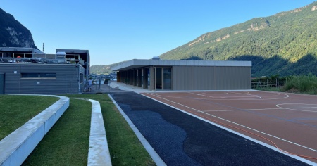 Ambiente - Un elemento distintivo di questo progetto è l’attenzione alla sostenibilità ambientale. Il nuovo edificio è stato progettato secondo i più elevati standard di efficienza energetica ottenendo la certificazione MINERGIE-A anche grazie all’installazione di pannelli solari e l’utilizzo di materiali eco-compatibili. L’edificio corrisponde al più recente stato della tecnica, grazie al quale è possibile raggiungere ottime prestazioni in termini di qualità dell’aria, benessere termico, come pure un mantenimento del proprio valore superiore alla media. L’utilizzo di energia rinnovabile, un’impiantistica ottimizzata e apparecchi efficienti determinano un fabbisogno di energia rimanente minimo. Queste scelte non solo ridurranno l’impatto ambientale dell’istituto, ma rappresentano anche un importante esempio educativo per i nostri giovani, sensibilizzandoli alle tematiche ambientali.