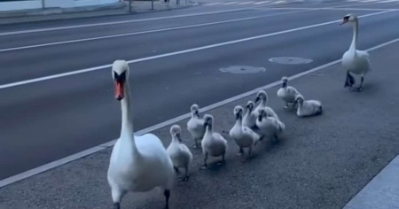 Con la loro tracotante sicumera, tipica della specie, il gruppetto di cigni è stato avvistato mentre percorreva baldanzoso il marciapede di via Cattori, a Paradiso. Allontanandosi, per qualche motivo, dal loro ambiente naturale, il lago, tra gli sguardi sopresi di chi ha avuto la fortuna di incrociarli.