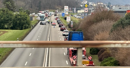 L'incidente è avvenuto sulla strada all'altezza della zona dei centri commerciali, in direzione di Bellinzona. Disagi al traffico.