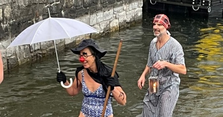 I coraggiosi partecipanti si sono radunati insieme prima di percorrere a nuoto un tratto di circa 80 metri. A tutti è stato offerto un bicchiere di vin brulé.
