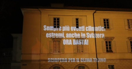 BELLINZONA - Sciopero per il Clima è tornato in piazza venerdì con una nuova azione: una proiezione sul Palazzo delle Orsoline a Bellinzona. È lo stesso coordinamento a spiegarne il contenuto.