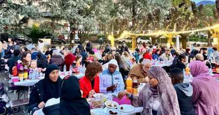Il banchetto multiculturale si è tenuto al tramonto e voleva celebrare l'Iftar, il pasto serale che spezza il digiuno del Ramadan.