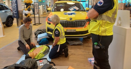 «Salvare una vita» – Da un angolo ecco sbucare mamma e figlio. Il ragazzo sta per iniziare la trafila per ottenere la patente dell'auto. Presto affronterà il corso di sensibilizzazione. Ecco perché è particolarmente incuriosito dal manichino esposto nell'atrio del centro commerciale. «È un tema che mi affascina – sostiene –. Al momento non so se sarei in grado di salvare una vita. In ogni caso sono consapevole che una persona in difficoltà prima di tutto va messa in sicurezza. Poi, certo, chiamerei il 144».
