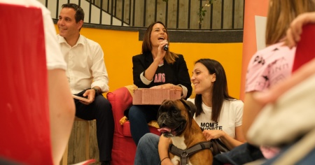 Fonio, davanti a una platea di alcune decine di ascoltatori (bambini in maggioranza, ma anche diversi adulti) ha letto "Nella città dei sogni". L'ascoltatore d'eccezione? Il suo cane, Clay, un esemplare di boxer di sei anni di età. Clay ha ascoltato con sufficiente attenzione le letture fatte da Fonio, dalla conduttrice di Radio 3i e Teleticino Lolly Camèn - che ha rotto il ghiaccio, leggendo e mostrando le illustrazioni di "Madeline e il cane che le insegnò ad amare i libri" e della scrittrice Daniela Schütz, che ha presentato il suo ultimo libretto, "Leo e la sua stella". Forse, ogni tanto, si è distratto per guardare gli altri cani presenti in sala.