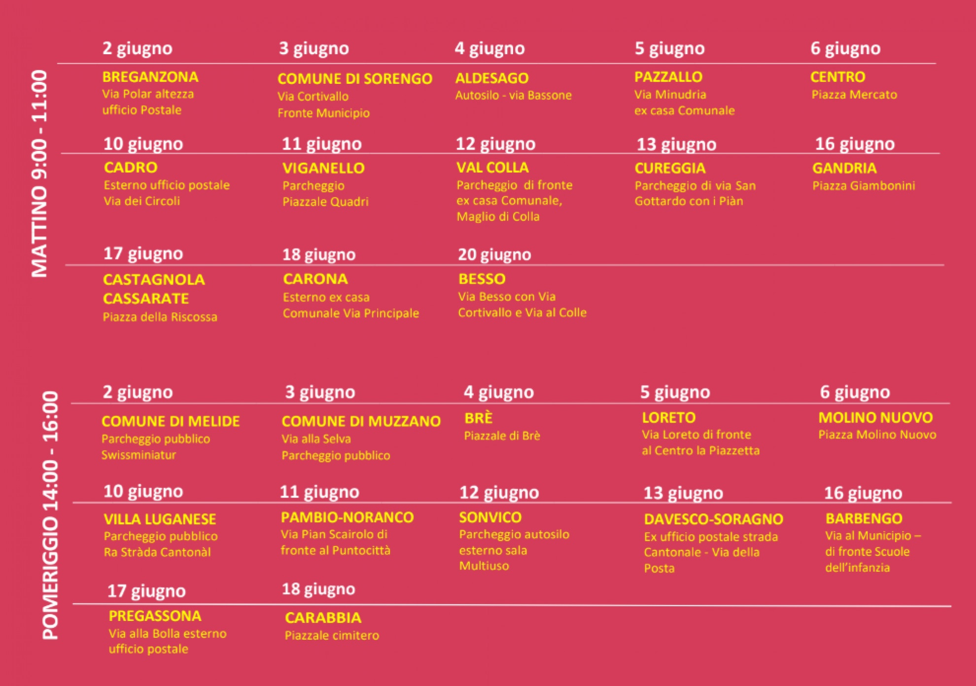 Sono previsti 25 appuntamenti dal 2 al 20 giugno nei 21 quartieri e nei Comuni convenzionati di Sorengo, Muzzano e Melide. I precedenti incontri, a partire dal 2022, hanno coinvolto 694 persone con riscontri molto positivi.