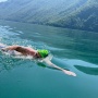 Ieri ha attraversato il lago di Lugano (39 km). Ora toccherà ad altri nove laghi svizzeri. Bracciata dopo bracciata per sensibilizzare sulla rara sindrome del figlio.