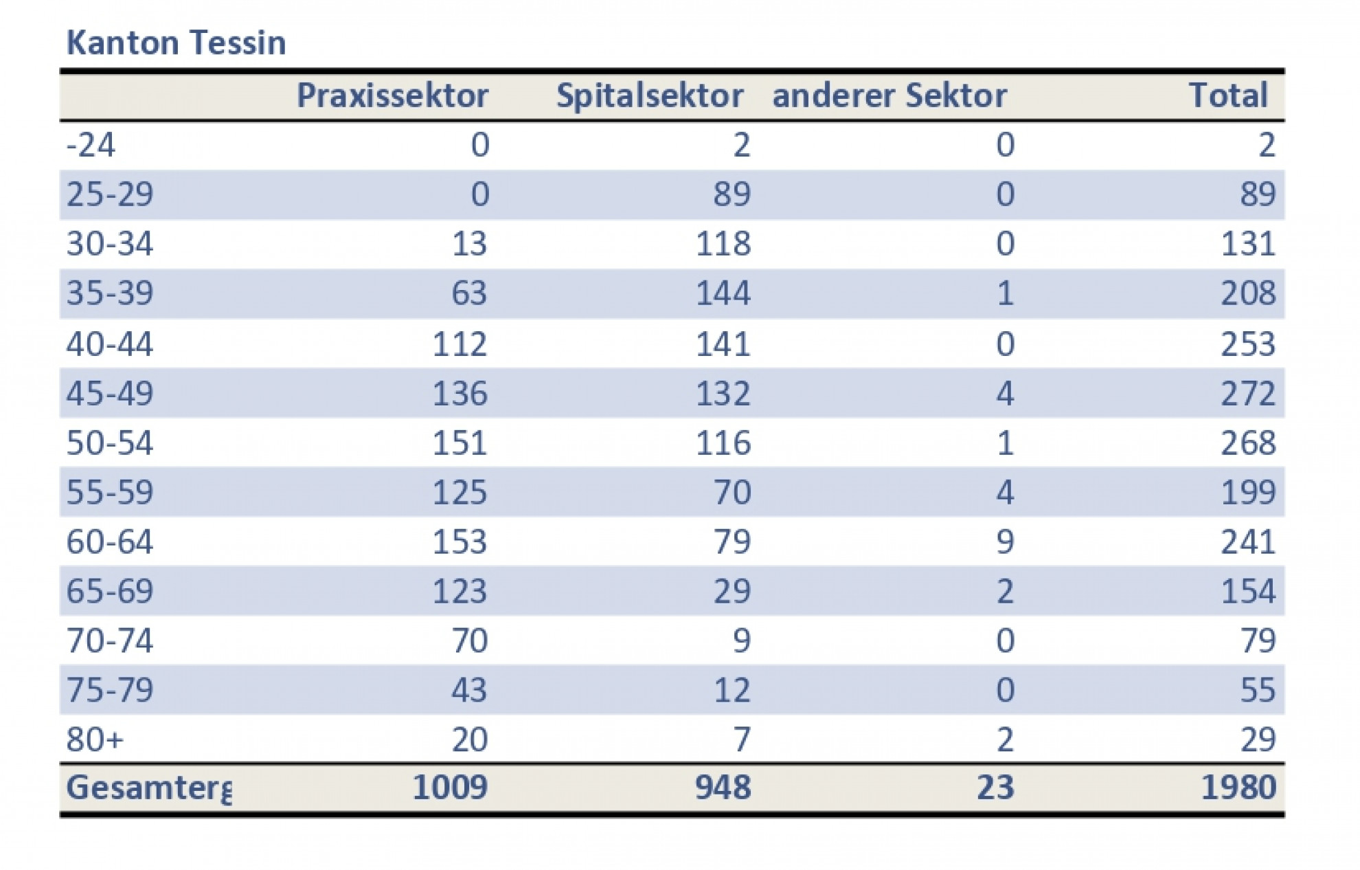 A livello svizzero, i medici ultraottantenni sono invece 452, mentre ben 5’381, il 13%, sono over 65.