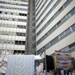 Mentre ci parla della sua situazione, fa capolino una ragazza che si fionda su per le scale per raggiungere casa sua, in uno dei 16 piani dello stabile.