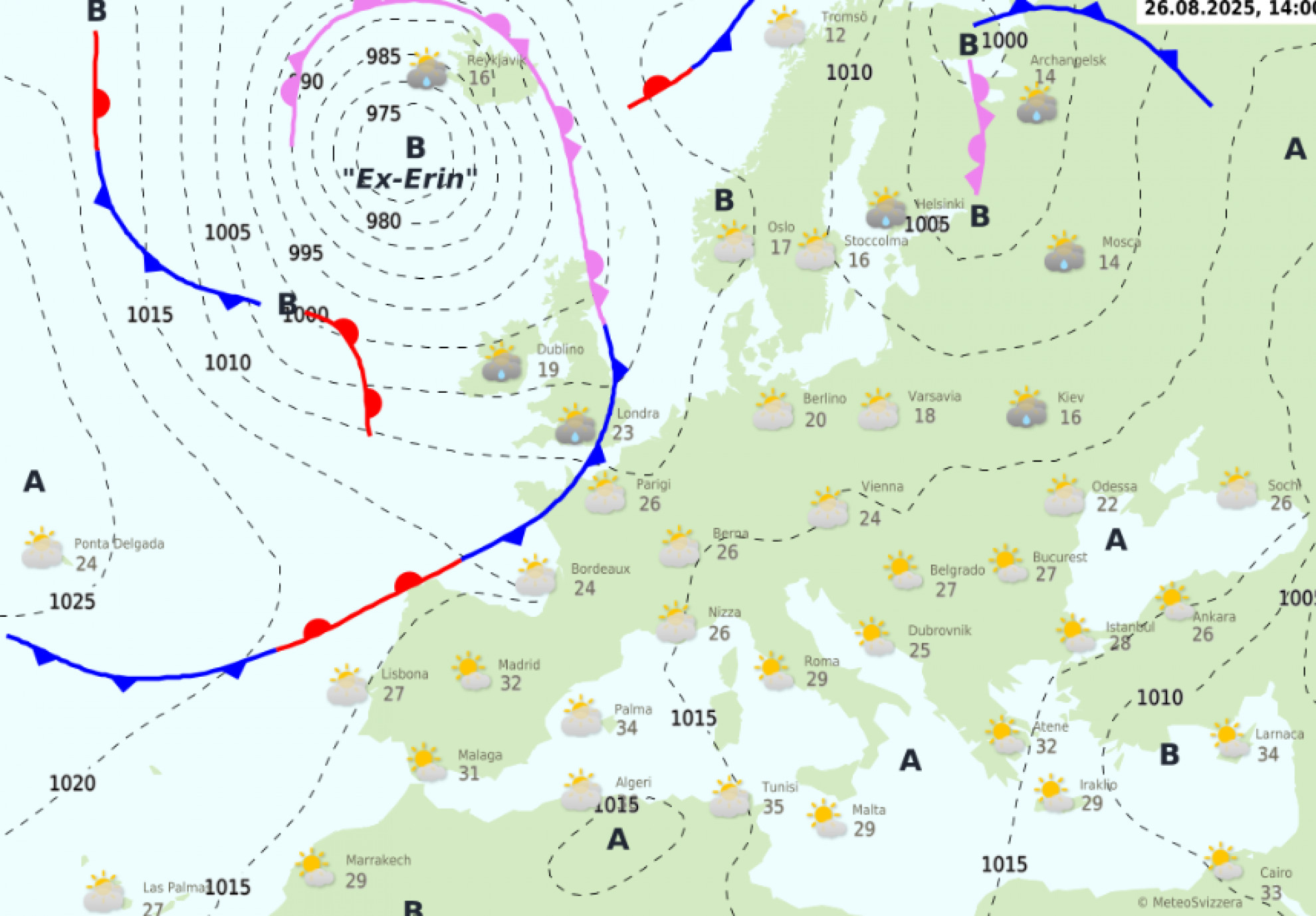 Il ruolo dell'ex uragano "Erin" - MeteoSvizzera spiega inoltre che il cambiamento è causato da una depressione formatasi sulla Penisola Iberica, innescata dall’ex uragano “Erin”. Tra martedì e giovedì questa bassa pressione si sposterà verso le Alpi, trasportando grandi masse di aria calda e umida dal Mediterraneo e dando origine al peggioramento.