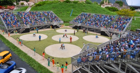 Insieme, hanno dato vita al primo modello dell’arena della Festa della Lotta Svizzera, una riproduzione accurata delle installazioni, dell’arena, del pubblico, delle figure folcloristiche e naturalmente dei lottatori. Inoltre, per completare l’opera, l’arena è stata contornata da altri due sport tradizionali svizzeri di grande importanza: l’Hornussen e lo Steinstossen.