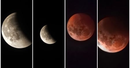 Alcuni scatti mostrano il satellite tinto di rosso durante la seconda eclissi dell’anno.