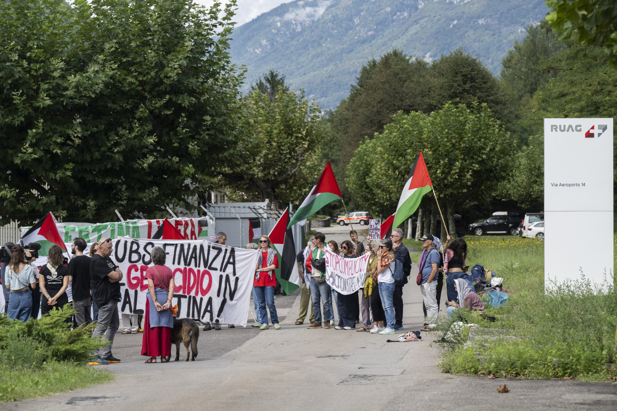 «Ruag - sostengono i manifestanti, un gruppo di pacifisti pro-Palestina - è un’azienda svizzera di armamenti controllata interamente dal Consiglio Federale, che continua a intrattenere rapporti con l’azienda israeliana Elbit Systems».