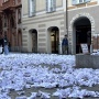 Littering sotto la lente - Stavolta, sotto la lente è finito il littering, quella cattiva abitudine che consiste nell’abbandonare piccoli rifiuti negli spazi pubblici e nella natura. All’alba, migliaia di volantini di carta appallottolati sono stati sparsi proprio di fronte a Palazzo Civico, per far riflettere la cittadinanza.
