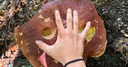 Giacomo sostiene di aver trovato un porcino da 2,5 chili. Forse il più grande mai arrivato in redazione