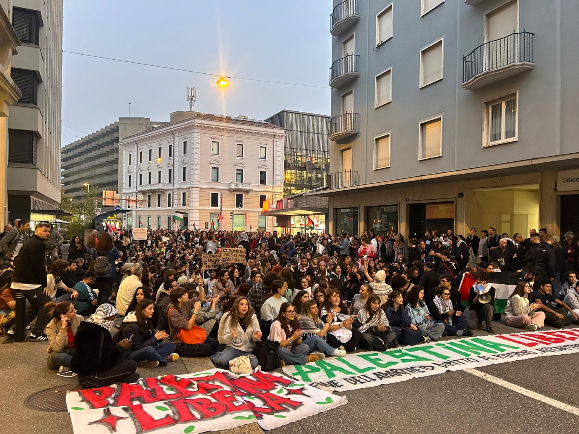 LUGANO - Dopo la grande affluenza di giovedì scorso lungo le vie di Lugano per la manifestazione contro la guerra a Gaza, anche stasera in tanti si sono dati appuntamento in piazza Dante per il "Presidio contro il genocidio", in solidarietà con il popolo palestinese.