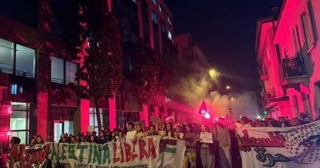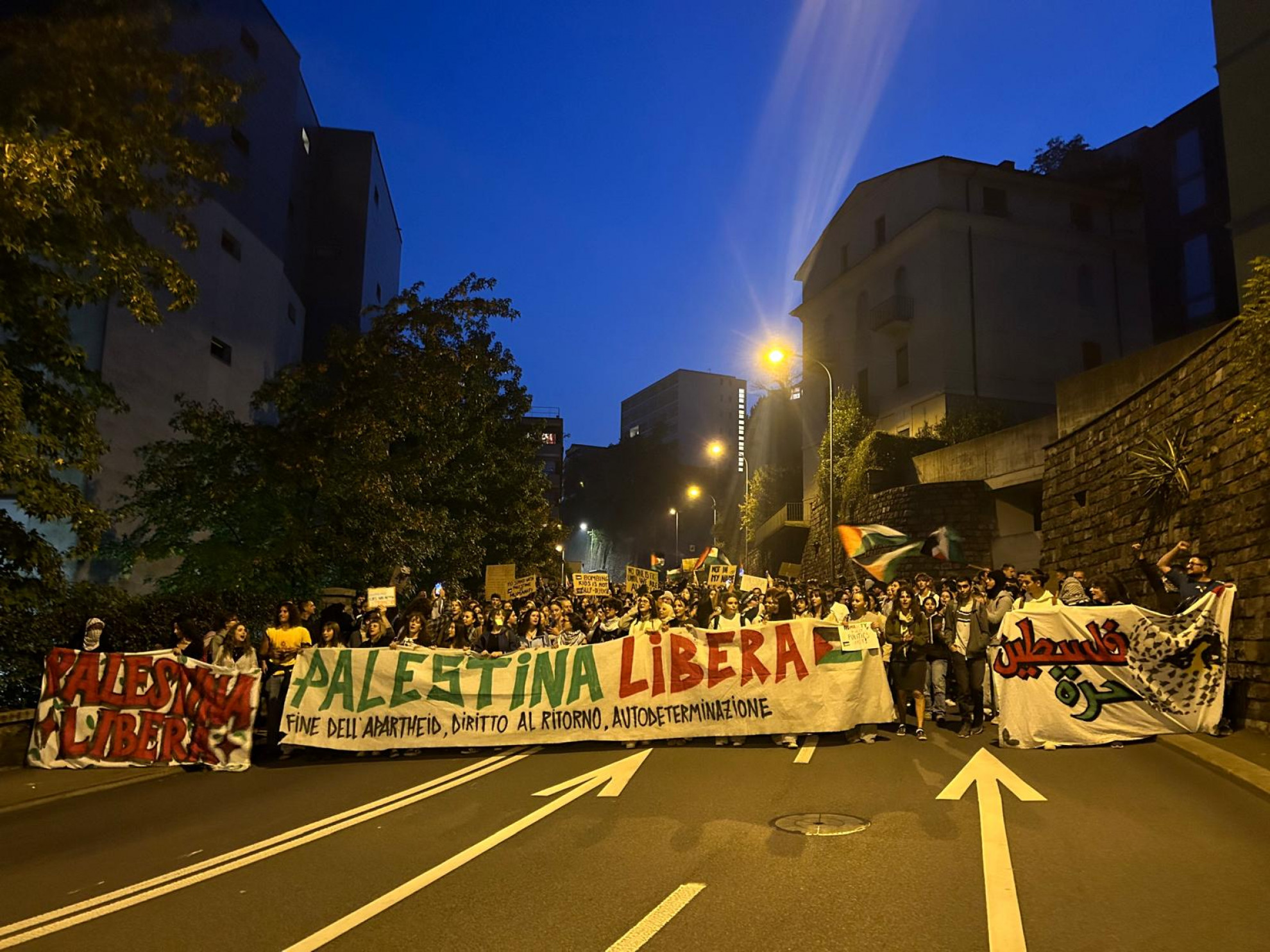 Il gruppo è poi partito in corteo, al grido «riprendiamoci le strade». Sullo striscione di testa si legge «Palestina libera, fine dell'apartheid, diritto al ritorno all'autodeterminazione». Camminando i manifestanti hanno ripetuto anche che «gli israeliani sono tutti fascisti» e «assassini»