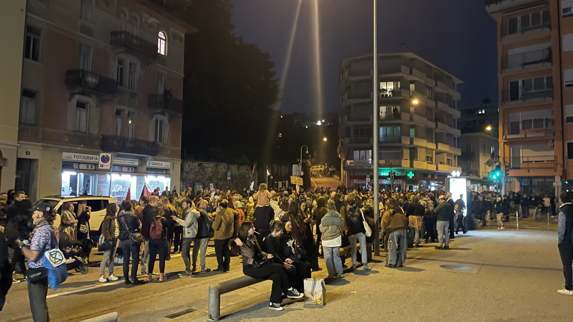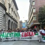 All'altezza di via Balestra si sono seduti a terra, bloccando la via per qualche minuto, per poi ripartire.