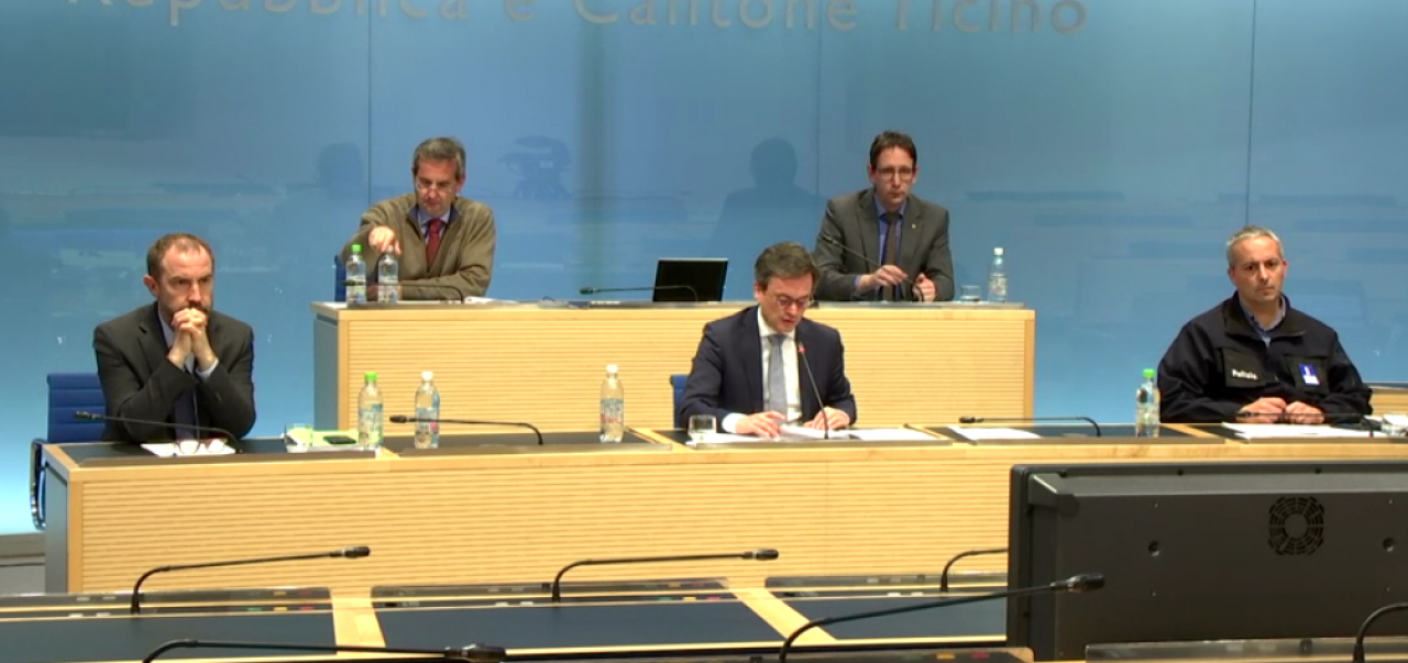 Presenti all'appuntamento c'erano Christian Vitta (Presidente del Consiglio di Stato), Matteo Cocchi (Capo del SMCC), Giorgio Merlani (Medico cantonale), Giovan Maria Zanini (Farmacista cantonale).