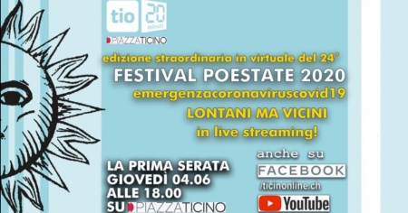 LUGANO - Dal selciato... ai bit per Poestate che, per questo 2020, sceglie la strada del 100% digitale per via dell'emergenza Covid-19. Lo storico festival letterario luganese si traduce in un triplice appuntamento su piazzaticino.ch e sulle pagine Facebook e YouTube di tio.ch/20minuti. L'appuntamento è per le serate del 4, 5 e 6 giugno a partire dalle ore 18.