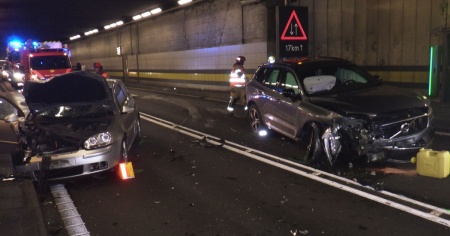Nell'incidente, che si è verificato nella parte urana del tunnel, i due conducenti sono rimasti feriti in modo grave e sono stati trasportati all'ospedale.