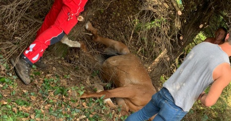 Un cavallo è rimasto vittima di un infortunio dopo essere caduto in una scarpata e non riuscendo più a rialzarsi da solo. I pompieri, appositamente attrezzati, sono riusciti rimettere in piedi l'animale, che ha riportato ferite leggere.