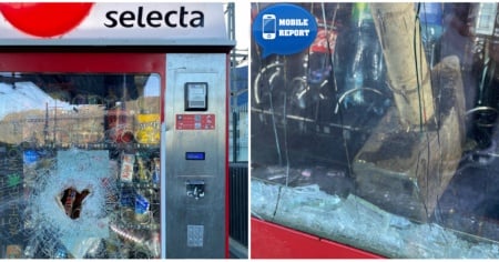 Qualcuno ha distrutto il vetro del distributore automatico, rubando parte del contenuto.