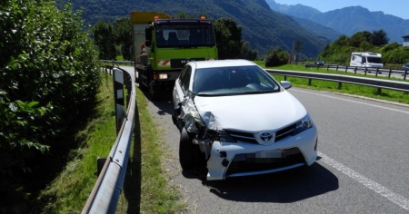 Auto contro un mezzo del Cantone: non si registrano feriti