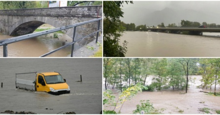 Fiume Ticino altissimo - Anche la pioggia è scesa copiosa durante la notte: «Abbiamo misurato Ingenti accumuli di precipitazioni in 24 ore, localmente sono stati superati i 400mm». Pioggia che ha causato vari allagamenti e notevolissimi disagi soprattutto nel Sopraceneri. Pioggia che ha innalzato pericolosamente il livello del fiume Ticino, che in alcuni punti è esondato, provocando danni e disagi. Alcune mucche sono state tratte in salvo a Gudo e Contone. Mentre la pista dei kart di Magadino è finita letteralmente sott'acqua. Anche la zona della golena di Bellinzona e il centro di smaltimento di Carasso (vedi foto e video) sono allagati. Il Ticino non è però il solo corso d'acqua a essersi ingrossato a causa della pioggia. Anche il fiume Maggia è esondato alla foce di Locarno e molti altri torrenti sono al limite - o sono già straripati - in varie zone del cantone come in Valle di Blenio (video del torrente della Valle Pontirone), in Riviera (video Osogna) in Leventina o Vallemaggia (Bignasco).