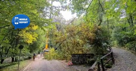 Un albero si è pericolosamente inclinato a causa delle piogge. Ma a fermarlo c'erano dei rami.