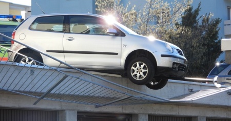Lo sfiorato disastro è avvenuto attorno alle 15.00, quando una donna - a bordo della sua VW con targhe ticinesi - ha iniziato una manovra sul tetto di un garage. A questo punto, non si sa esattamente cosa sia successo, ma il veicolo ha divelto con il muso la ringhiera di protezione trovandosi con la parte anteriore nel vuoto.