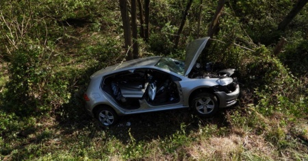 Un'auto, dopo aver sbattuto contro il guardrail, è uscita di strada prima della curva a esse, finendo nella scarpata